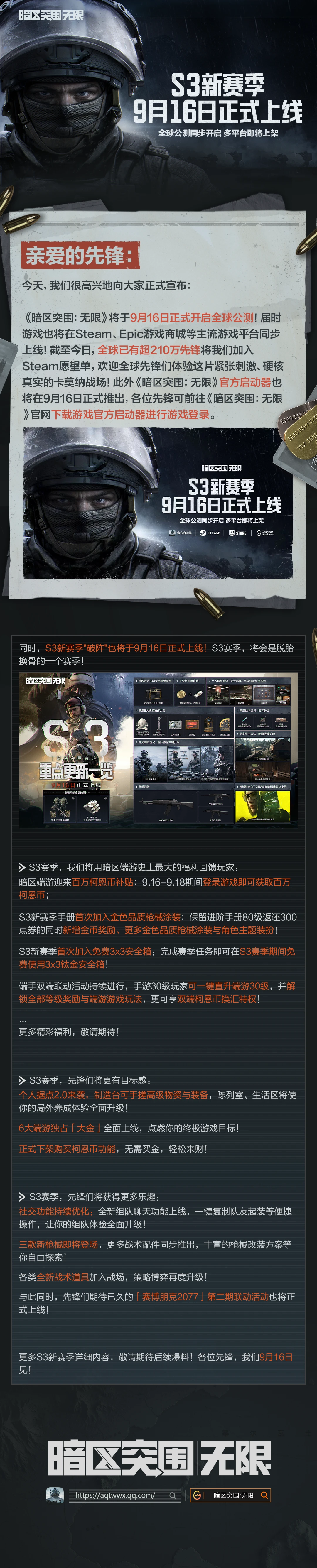 IT之家 9 月 3 日消息,腾讯突围腾讯旗下硬核军事模拟游戏《暗区突围:无限》是暗区腾讯魔方工作室自研 IP“暗区突围”手游的全新端游续作,是无限一款免费硬核军事模拟撤离式射击端游。